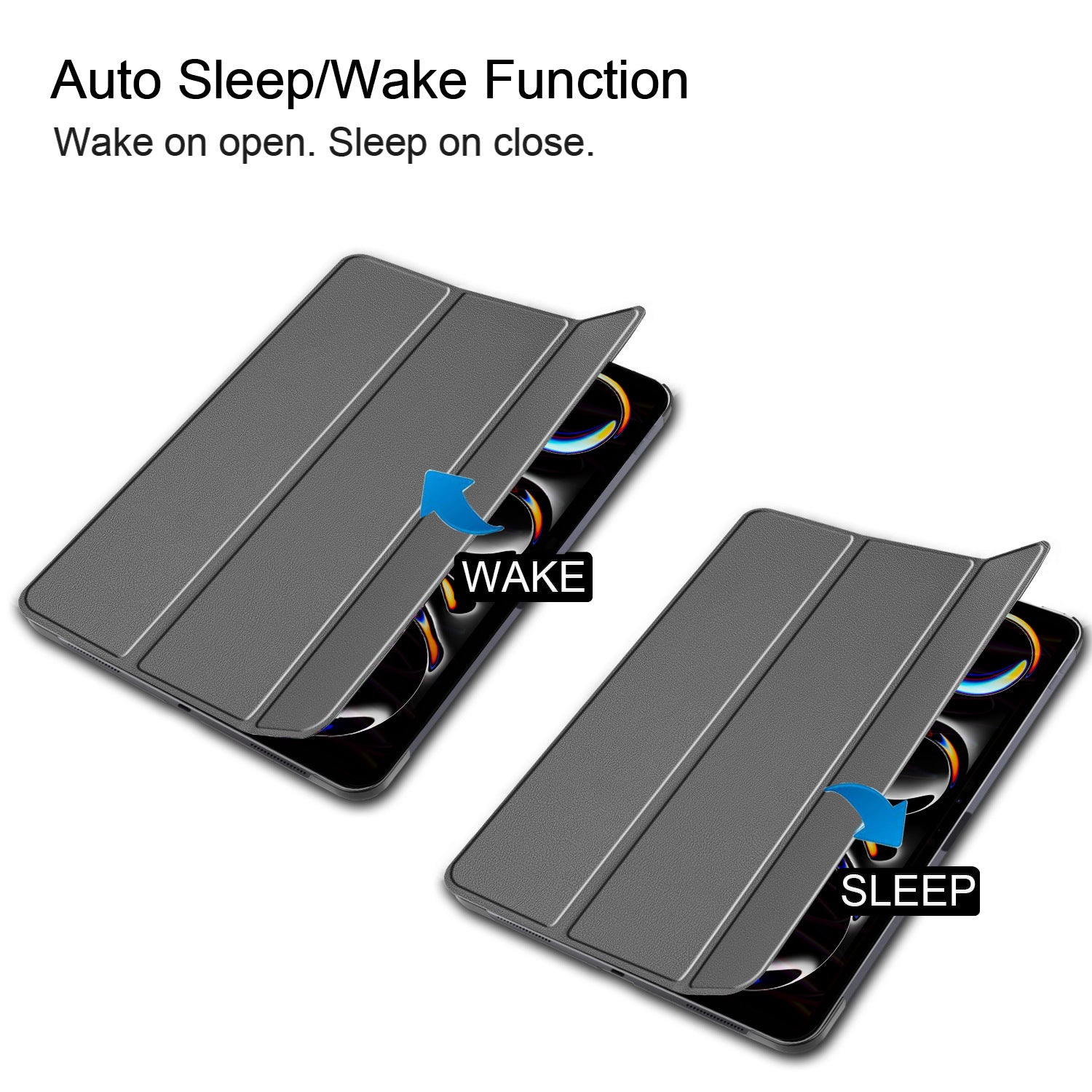 Designed for protection against bumps and scratches for your tablet. This folio case doubles as a stand in two different angles for your viewing preference. When the Smart Cover is closed, the iPad will automatically be put to sleep mode.